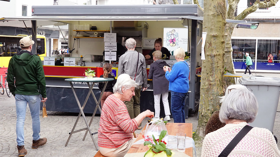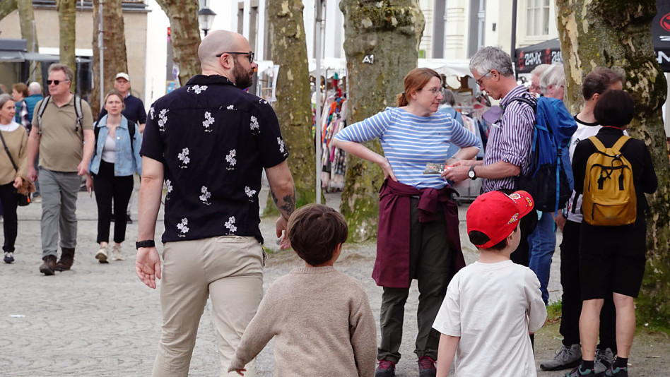 Zusätzlichen Schwung erhielt der Markt durch den parallel stattfindenden Tag der Steige. Viele Wanderfreunde, die gestern auf dem Kettwiger Panoramasteig unterwegs waren, nutzten die Gelegenheit für einen Zwischenstopp in der Altstadt. Auch der Heimat und Verkehrsverein hatte eine geführte Wanderung organisiert. Unter der Leitung von Fritz Gräbe machte sich eine illustre Gruppe auf den Weg Richtung Bahnhof, um anschließend den Panoramasteig zu erkunden. Ein Abstecher über den Frühlingsmarkt gehörte dabei selbstverständlich dazu.